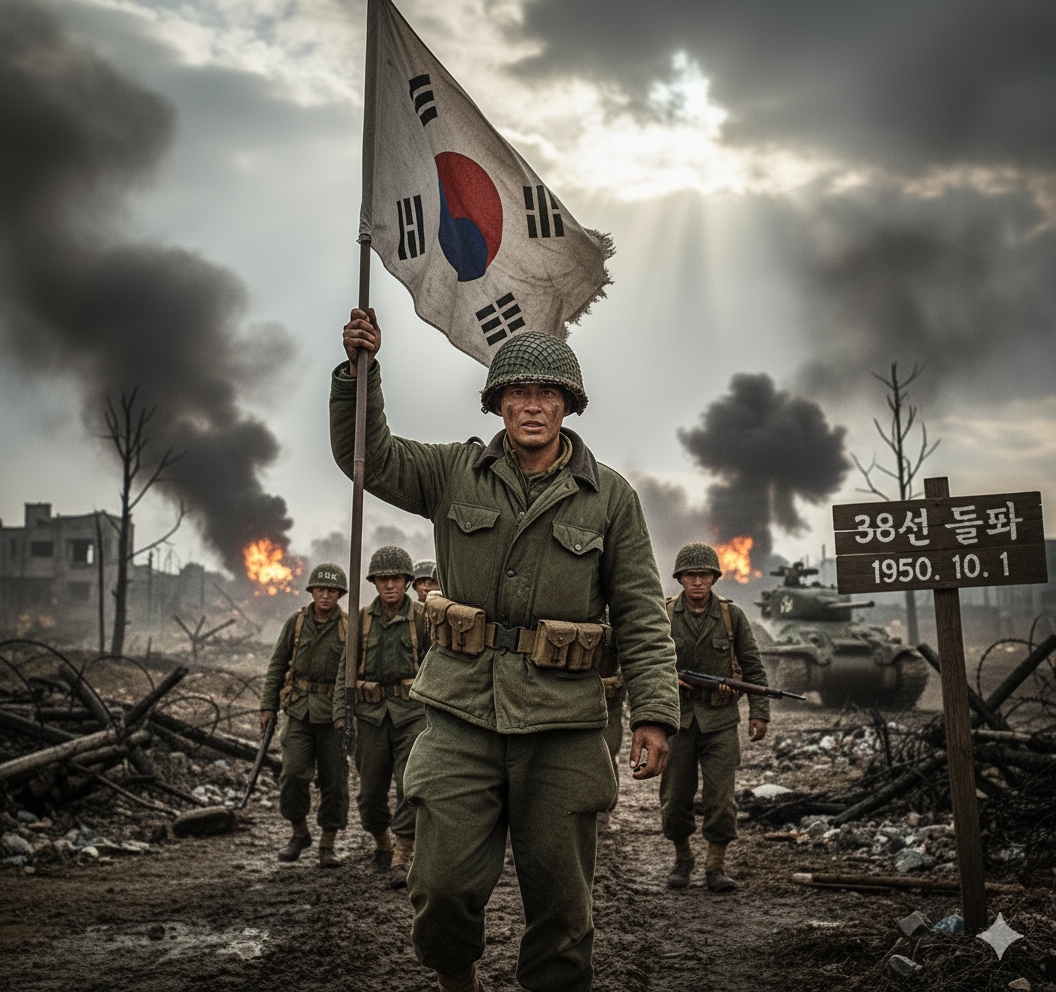 1950년 10월 1일, 치열했던 다부동 전투와 인천상륙작전 성공 이후 파죽지세로 북진하던 국군 제3사단이 동부전선에서 38선을 최초로 돌파했습니다.